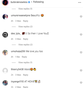 Aya magambo meza yanyuze abenshi mu bamukurikira hanini urebeye mu butumwa n’ibitekerezo batanze kuri iyo nkuru aho abenshi bagarukaga ku rukundo bamukunda.