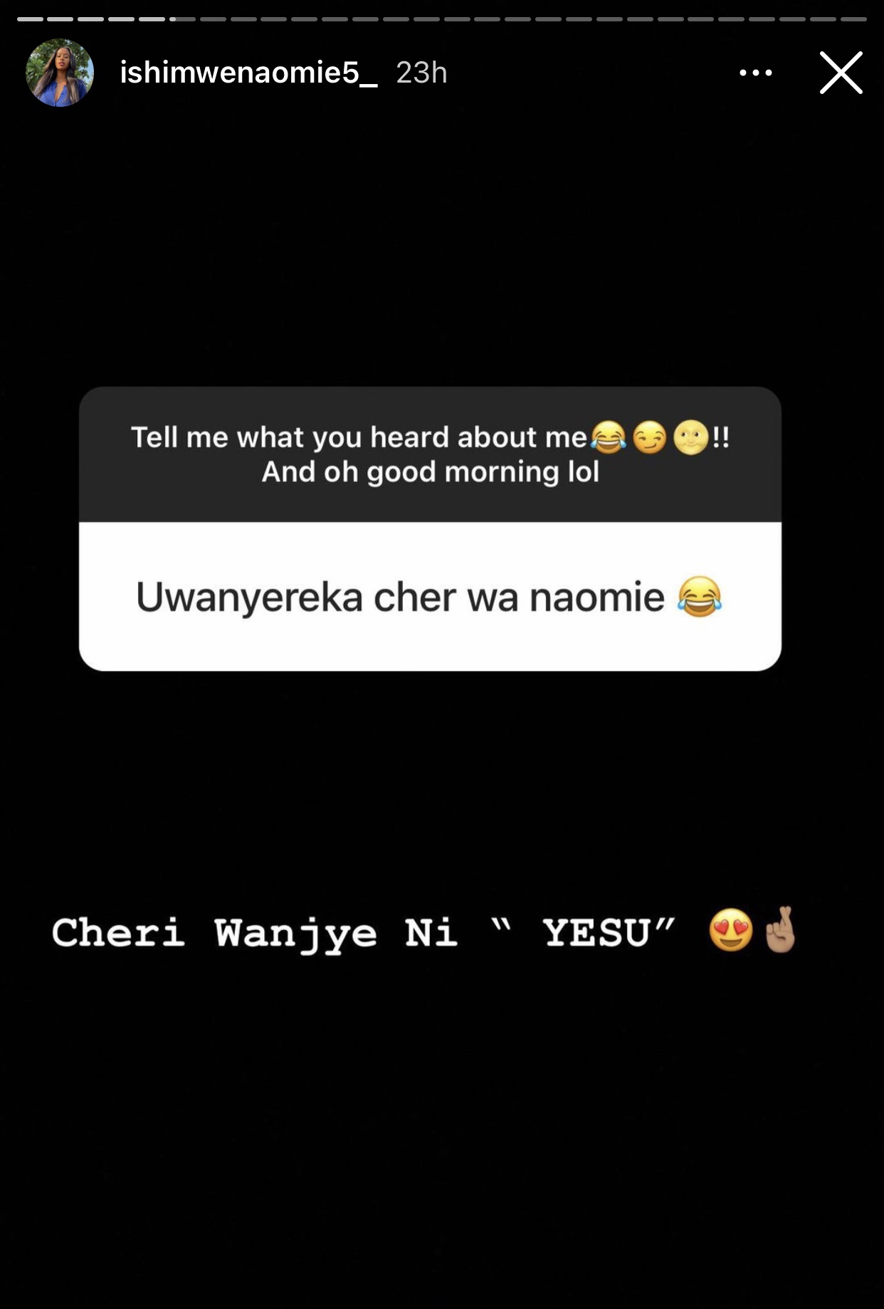 Nkuko byagaragaye mu gisubizo Miss Naomie yatanze yavuze ko umukunzi we ari YESU.