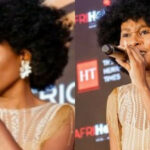 Nawe usigaye urwaza abasore! Aline Sano yagiye ku rubyiniriro yambaye agakanzu gato cyane gafite na pasura ebyiri zose imbere(amafoto)