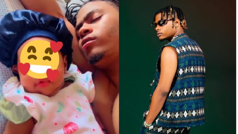 Abinyujije ku rukuta rwe rwa Instagram, Okkam yasangije amashusho abamukurikira, aho yagaragaye aryamye ari kumwe n’umwana we.