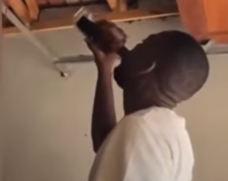 Mu mashusho yagaragaye ku rubuga rwa Instagram yagaragaje umugabo ugotomera zimwe mu nzoga zikarishye ku buryo yashyize ku munwa inzoga yari mu icupa yashizemo adakuye icupa ku munwa gusa ibyamubayeho n’agahomunwa kuko za mugize intere ku buryo bikwiriye kubera isomo abanywa inzoga bashaka kwemeza abo bari kumwe cyangwa babategeye.