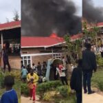 Biri kuba kano kanya! Byumba, abanyeshuri bakwiriye imishwaro na za matela ku mutwe nyuma y’uko ikigo bigamo gifashwe n’inkongi y’umuriro (VIDEWO)
