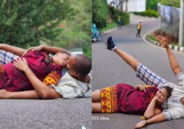 in AMAFOTO Basomanye baryamye mu muhanda rwagati abagenzi barashungera: Umugabo n’umugore bakora ibiganiro by’abakuru by’ibanda ku bashakanye bongeye kwigarurira imbuga nkoranyambaga kubera amafoto yabo adasanzwe [AMAFOTO]