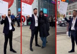in Hanze Amashusho y’umuzungu wazengurutse mu muhanda afite icyapa kinini yanditseho ko ashaka umugore, ari gushakwa n’inkumi z’uburanga (VIDEWO)