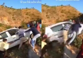 in Hanze Imodoka yakoze impanuka abantu barayegura, shoferi akimara kubona imodoka igeze ku butaka ahita yiruka adahembye abayeguye, igeze imbere ihita yongera irahirima – videwo