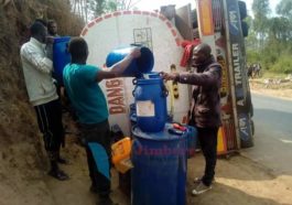 in Hanze Imodoka yari itwaye ibikomoka kuri peteroli yakoze impanuka maze abaturage baza kwivomera (Amafoto)