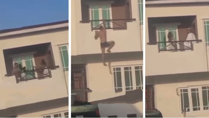 in Hanze Umugabo yasimbutse etaje yambaye ubusa ubwo nyir’urugo yamusangaga aryamanye n’umugore w’abandi (Video)