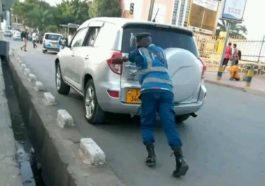 in Hanze Ifoto y’umunsi: Umupolisi wo mu gihugu cy’u Burundi yagaragaye ari gusunika imodoka mu muhanda