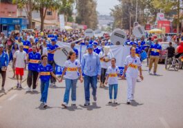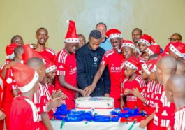 in imikino Byiringiro Lague yifashishije n’abana bari mu irerero rya Bayern Munich mu Rwanda mu birori byo kwizihiza iminsi mikuru isoza umwaka – AMAFOTO