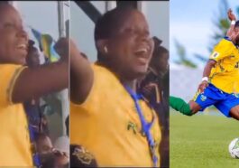 in imikino Amashusho y’umunyamakuru Faustinho Simbigarukaho wahagurutse mu bafana yishimira itsinzi ubwo Amavubi yigishaga isomo rya ruhago ikipe y’igihugu ya Africa Y’Epfo