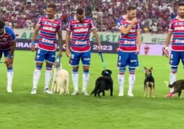 in imikino Mu gihe abandi bazana abana mu kibuga bo bazanye imbwa! Abakinnyi b’ikipe ikomeye bazanye ibibwana mu kibuga batungura abantu – Amafoto
