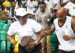 in imikino Umubyeyi waje gufana umwana we bikarangira abaye umuyobozi w’abafana muri Bk Arena, arimo gusabirwa igihembo gikomeye cyane mu mikino