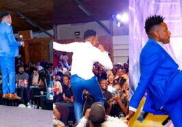 in imikino Kubera kutiyizera ku ndeshyo ye, umunyarwenya Eric Omondi yisunze udutebe ubundi aduhagararaho kugira ngo abafana bamubone (AMAFOTO)