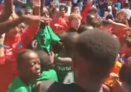 in imikino Ibendera ry’igihugu ryashyizwe mu bicu: Nyuma yo kugarika ikigugu muri ruhago babyinnye Sitade iranyeganyega (Amashusho)