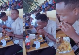 in imikino Umunyamakuru w’imikino ukunzwe hano mu Rwanda yagaragaye arimo kurira inyama muri sitade mu gihe abandi bari bahanze amaso Rayon Sports yandagaza APR FC – VIDEWO