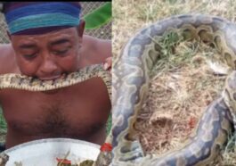 in Imyidagaduro Ibyo kuyitinya ntabikozwa: Nawe irebere umugabo wariye inzoka nk’urya ifi (Amashusho)