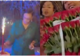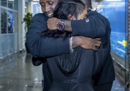 in Imyidagaduro Miss Aurore Kayibanda n’abo mu muryango we harimo na mama we barize barahogora ubwo bashyiraga indabyo ku mva y’umuhanzi Hirwa Henry(Amafoto)
