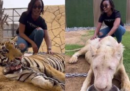 in Imyidagaduro Umunyarwandakazi Kate Bashabe yagaragaye arimo akora ku mugongo w’igisamagwe ndetse n’intare – VIDEWO