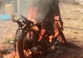 in Mu Rwanda Rusizi: Moto yafashwe n’inkongi y’umuriro irashya irakongoka ihinduka ivu nyirayo ari kurebera