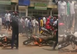 in Mu Rwanda Nyabugogo: Moto yari itwawe n’umusore ihiriye muri feruje rwagati abaturage bavuza induru -Videwo