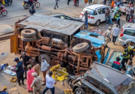 in Mu Rwanda Kigali -Nyabugogo habereye impanuka iteye ubwoba aho imodoka nini itwara imyanda yagonze abantu n’izindi modoka enye zari aho hafi mu muhanda rwagati -AMAFOTO