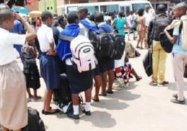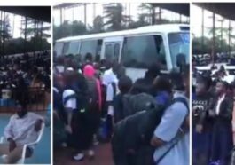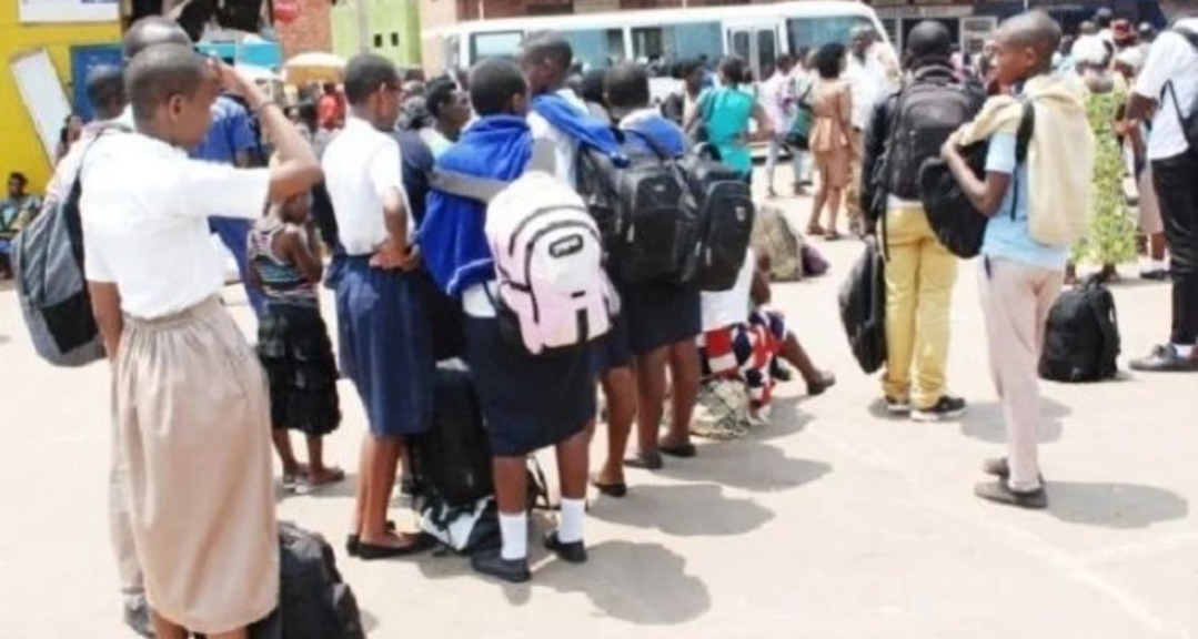 in Uburezi Abanyeshuri bahuye nuruva gusenya ubwo izuba ryabamenaga agahanga batonze umurongo Nyabugogo _AMAFOTO