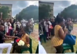 in urukundo Umupolisi yatunguye umukunzi we wiga muri Kaminuza amwambikira impeta imbere y’abandi banyeshuri(AMASHUSHO)