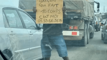 in Utuntu n'utundi Umusore yajyanye icyapa mu muhanda cyamamaza ko ariwe uzi gutera akabariro kurusha abandi