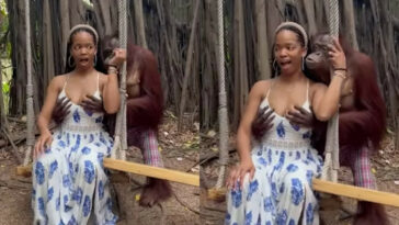 in Utuntu n'utundi Ingagi zisigaye zizi ubwenge! Umukobwa yagiye mu bukera rugendo gusura Ingagi agezeyo iramutereta ubundi ikajya yikandira amanyonyo ikajya imuha n’ibibizu – videwo