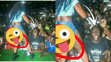 in Utuntu n'utundi Ifoto y’icyumweru! Umuhanzi kazi yagiye kurubyiniriro yegereye abafana umwe ahita acisha akaboko hagati y’amaguru ye ubundi yikandira amabuno