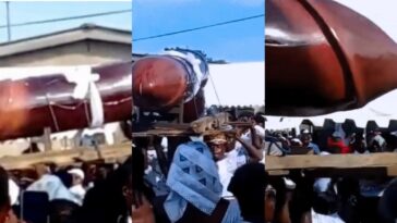 in Utuntu n'utundi Yayikundaga kubi! Umugore wabyaranye n’abagabo 10 yashyinguwe mu isanduku imeze nk’ubugabo busiramuye (VIDEWO)