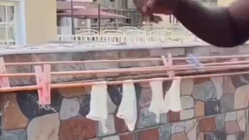 in Utuntu n'utundi Nyamara twarahenze: Umusore yagaragaye ari kwanika akavagari kudukingirizo ku mugozi(video)