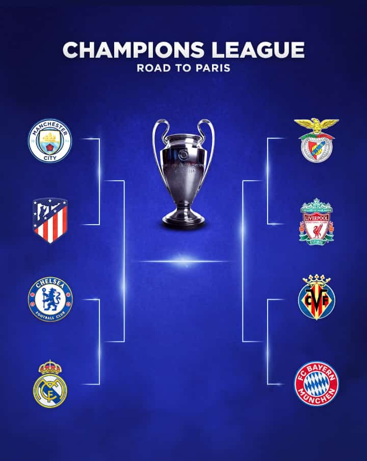 Mu yindi mikino izaba muri ¼, Manchester City ya Pep Guardiola izahura na Atlético Madrid, mu gihe Liverpool izahura na Benfica Lisbon.