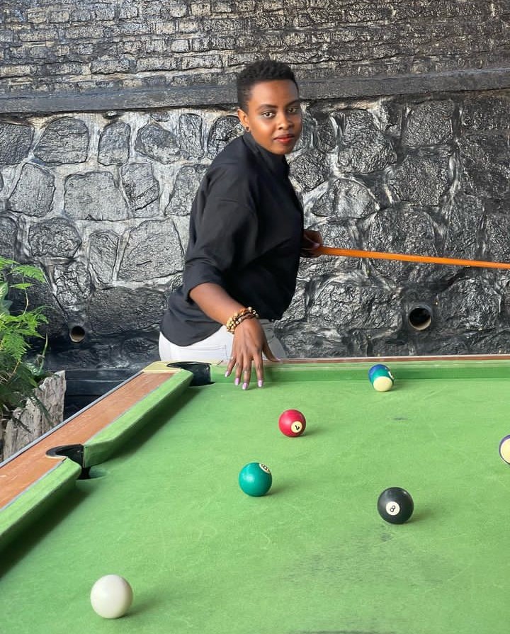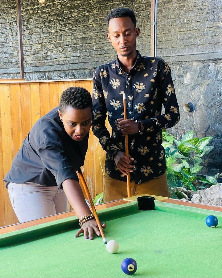 Umugore wa Clapton Kibonke yatunguranye nyuma yo kugarara ari gukina Biyari n’umugabo we maze aramutsinda karahava.