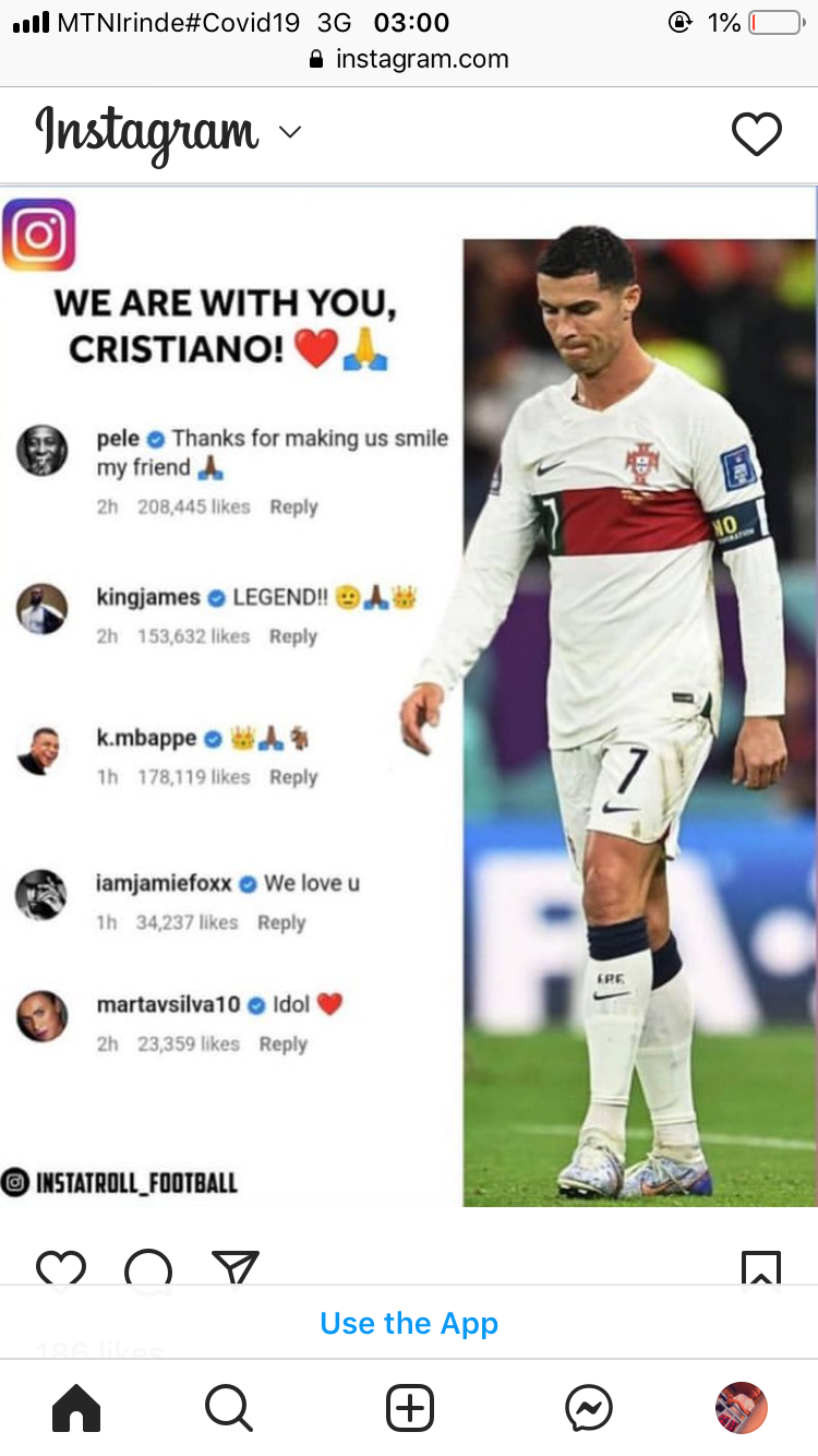 Ejo Saa kumi na 15 nibwo kizigenza Cristiano Ronaldo abinyujije ku rubuga rwe rwa Instagram rukurikirwa n’abarenga miliyoni 513, yashyize amarangamutima ye hanze nyuma y’uko Portugal isezerewe na Morocco iyitsinze igitego 1, mu mikino y’igikombe cy’isi.