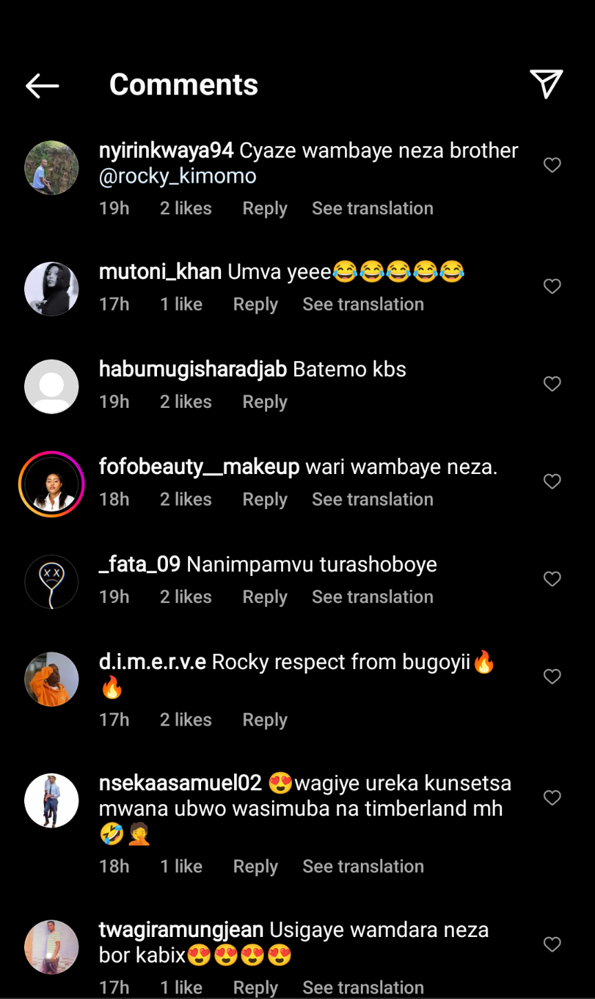 Umusobanuzi wa filime ukunzwe cyane hano mu Rwanda Rocky Kimomo yagaragaye ari muri BK Arena aho yari afite umupira wa Basketball maze arangije agira ati :”Abenyeshyari bazakubwira ko nahushije kandi nagatayemo” uyu musore ukundwa na benshi abantu bagiye bamugarukaho cyane bamubwira ko yambaye neza.