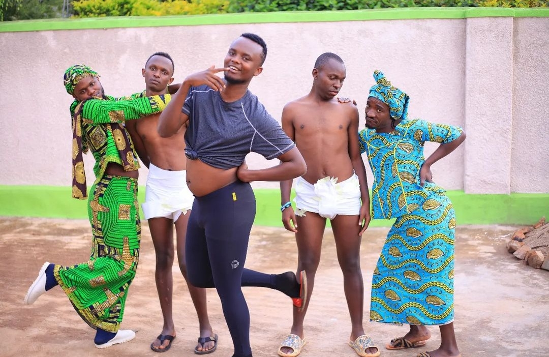 Pattyno hamwe n’abagenzi be harimo Mubi ndetse n’abandi bakinana muri Pattyno Comedy bifoje ifoto isekeje ariko utakereka ababyeyi kuko bari bigize nk’abakobwa kandi ari abahungu.