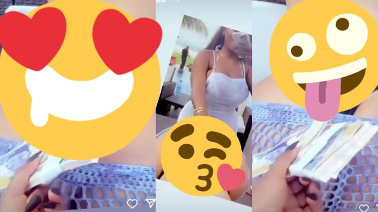 Abinyujije ku rukuta rwe rwa Instagram ahajya sitori, yasohoye amashusho ari kuzunguza ikibuno ni uko maze inyuma ye bakamunagaho ifaranga.