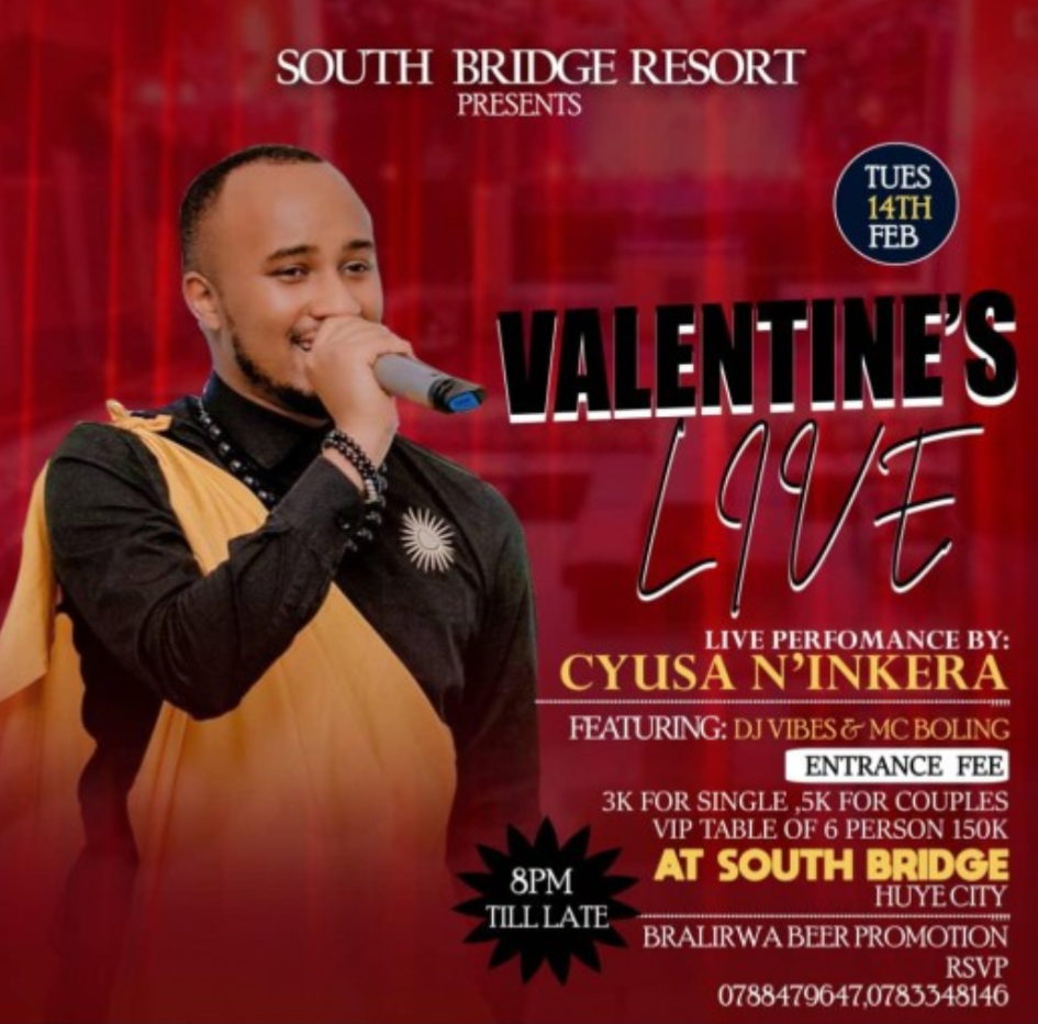 Iki gitaramo cyiswe “Valentine’s Live Performance” kizaba ku wa 14 Gashyantare 2023, aho Cyusa uzwi mu ndirimbo nka ‘Marebe’ azifatanya na bamwe mu baririmbyi na ba Dj bazacuranga muri iki gitaramo cyo guhimbaza abakundana.