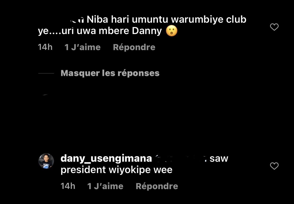 Umwe mu bafana ba Danny Usengimana yahise amubwira ati « Niba hari umuntu warumbiye club ye… uri uwa mbere Danny 😮 ». Danny yahise amusubiza mu magambo agira ati « saw president wiyokipe wee ».
