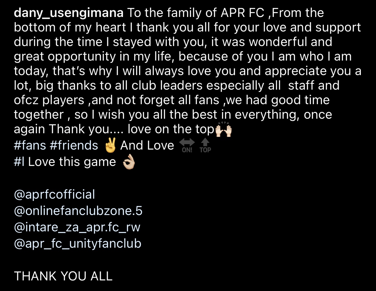 Ni nyuma yuko Danny ashyize hanze amwe mu mafoto ya kera ubwo yakiniraga APR RC akayaherekesha amagambo yuzuyemo gushimira cyane Abayobozi ba APR FC ndetse n’abafana kubera urukundo bamweretse.