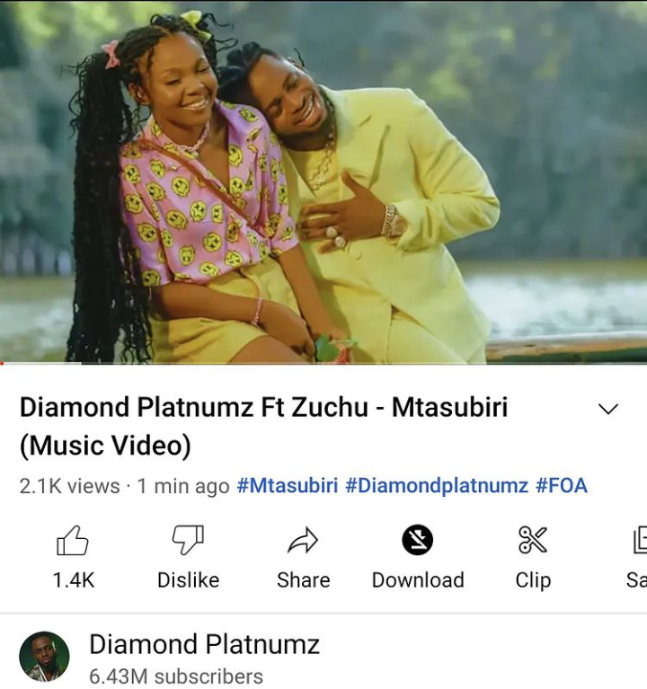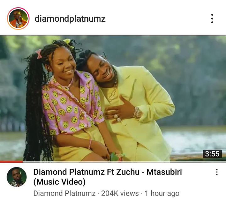 Ku munsi w’ejo hashize nibwo Diamond Platinmuz yashyize hanze amashusho y’indirimbo Mtasubiri yakoranye na Zuchu, iyi ndirimbo igisohoka yahise itangira kurebwa mu buryo budasanzwe.