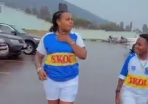 Uyu mukobwa ni we uri kuvanga umuziki muri ibi birori bya Rayon Sports birimbanyije biganisha ku mukino wa Rayon Sports na Vipers.