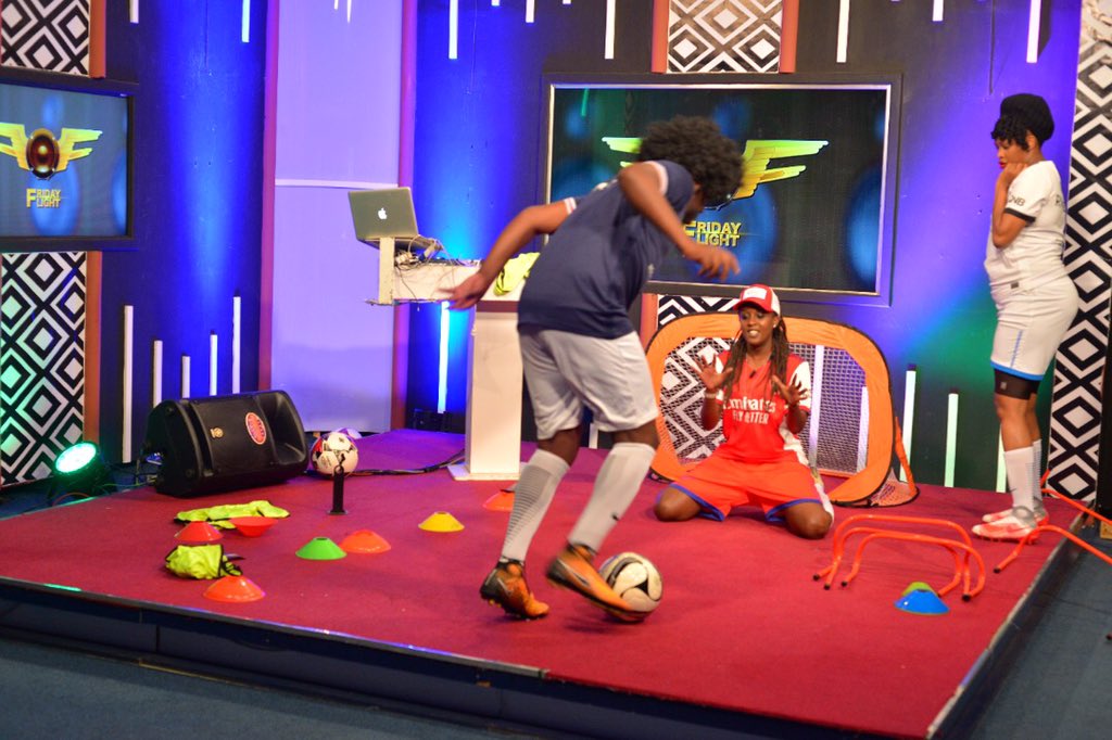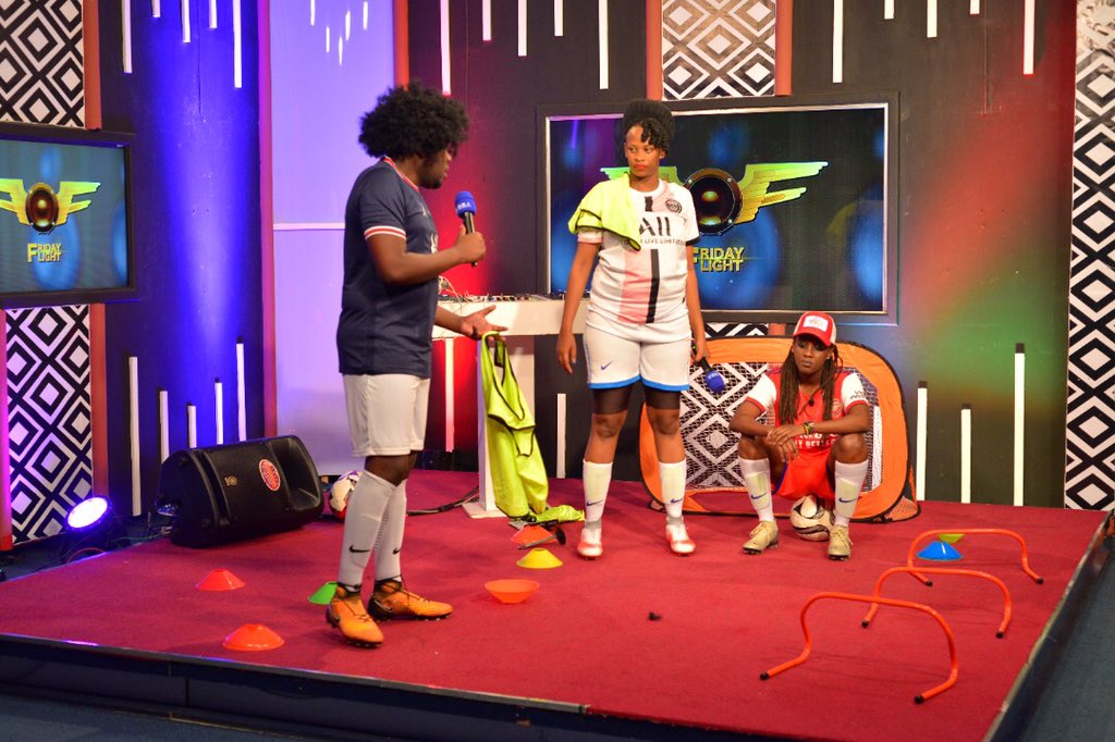 Anita Pendo, Dj Iraa na Gitego bacongeye ruhago muri studio ndetse Dj Iraa ananyuzamo akora akazi k’umuzamu aho yafataga imipira yari itewe na Gitego.