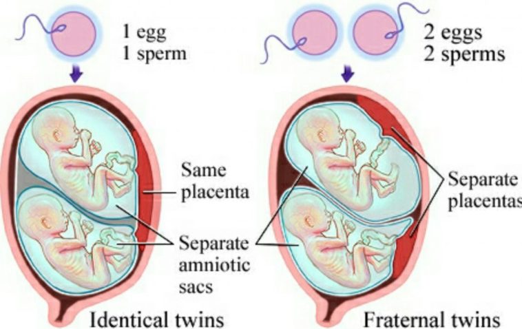 Iyo umugore amaze gutwita, hagati y’umunsi wa 2 n’uwa 6, hari igihe igi ryisaturamo ibice 2 bingana. Icyo gihe buri gice gikura ukwacyo, bikazatanga abana 2 baba bahuje ibyo twavuze haruguru. Baba bahuje ingobyi kandi. Gusa buri wese aba yifitiye uruzi rwe (omniotic fluid) yihariye.