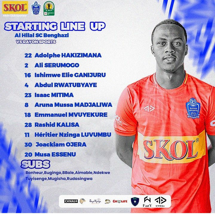 Dore intwaro 11 Rayon Sport ibanjemo ku mukino iri gutikurana na Al Hilal Benghazi, umukino warangiye 18: 30, uru nirwo rutonde Rayon Sport yasohoye nubwo bivugwa ko rushobora kuba rwahindutse ho gato.