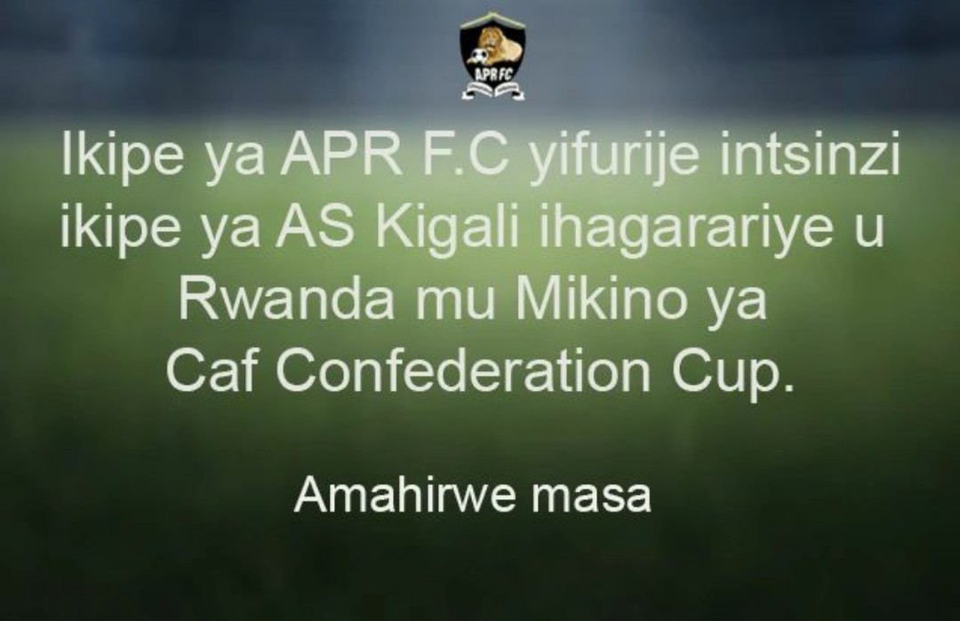 Mu butumwa ya yihaye yagize ati:” ikipe ya APR FC yifurije instinzi ikipe ya AS KIGALI ihagarariye u Rwanda mu mikino ya CAF Confederation Cup.