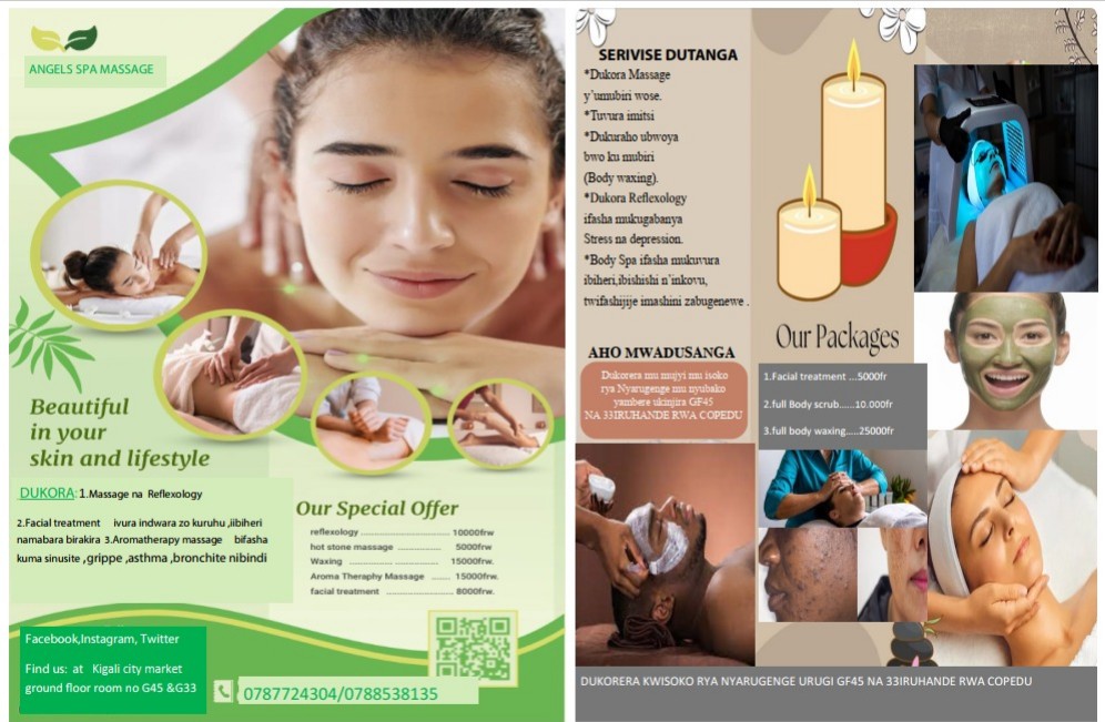 Ange Saloon Spa and Boutique, wabasanga mu isoko rya Nyarugenge, mu nyubako ya mbere, ukinjira GF 45 na 331 iruhande rwa COPEDU. Ku bindi bisobanuro wabasanga kuri nimero: 0781904532/ 0784048537, (whatsapp:0788 538 135).
