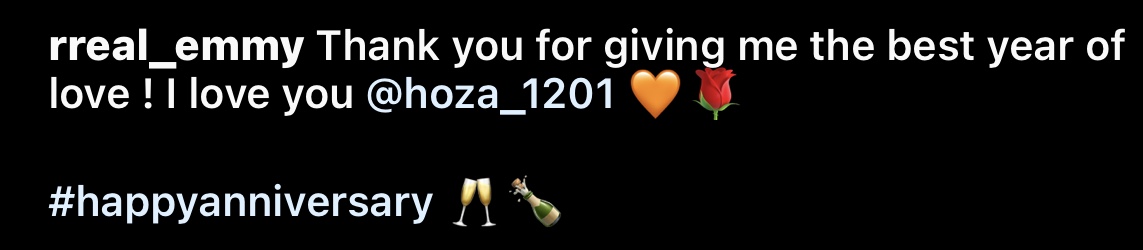 Umuhanzi Emmy n’umufasha we Umuhoza Joyce babwiranye amagambo meza y’urukundo nyuma y’umwaka umwe ushize barushinze. Aba bombi bakoresheje inkuta zabo za instagram maze bereka ababakurikirana akanyamuneza bafite nyuma y’umwaka umwe ushize barushinze.