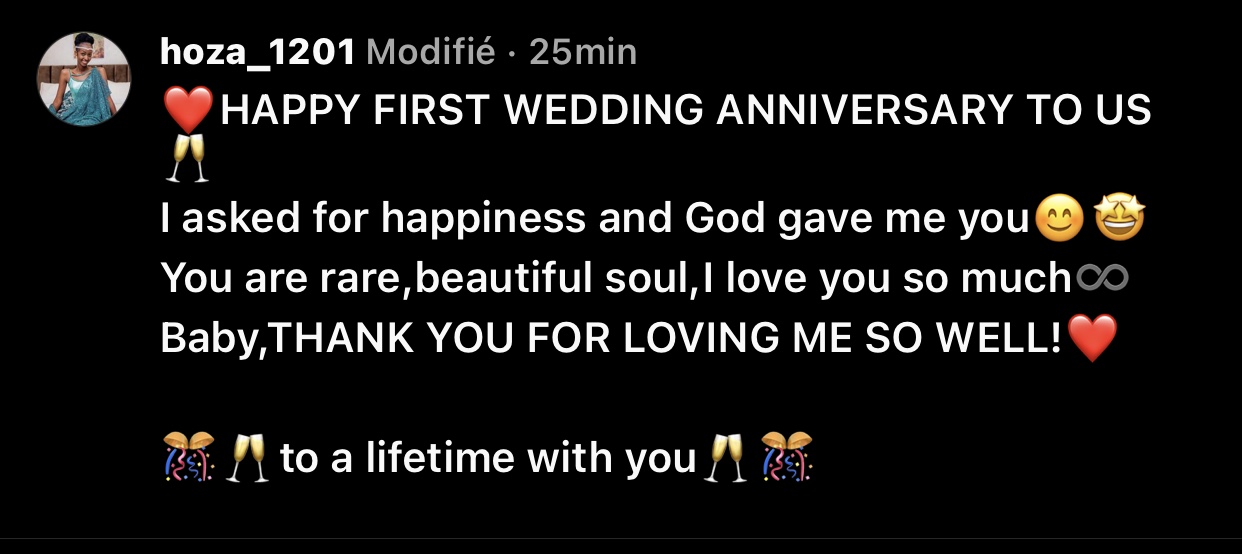 Emmy n’umufasha we babwiranye amagambo meza bizihiza umwaka umwe ushize barushinze